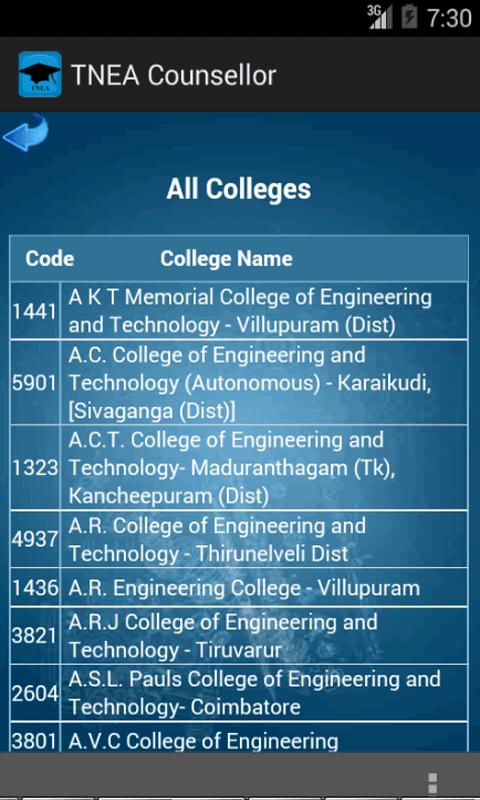 O " TNEA Counsellor " promete orientar a admissão em engenharia de Tamil Nadu para estudantes da 12ª DST, a fim de buscar sua educação adicional no campo da engenharia sem problemas. O aplicativo foi projetado para ajudá -los a escolher o curso de engenharia desejado em uma faculdade de sua escolha. Dá uma idéia para os alunos saberem, onde eles pousariam antes mesmo que os resultados caíssem. Os resultados são baseados em 2014, 2015.